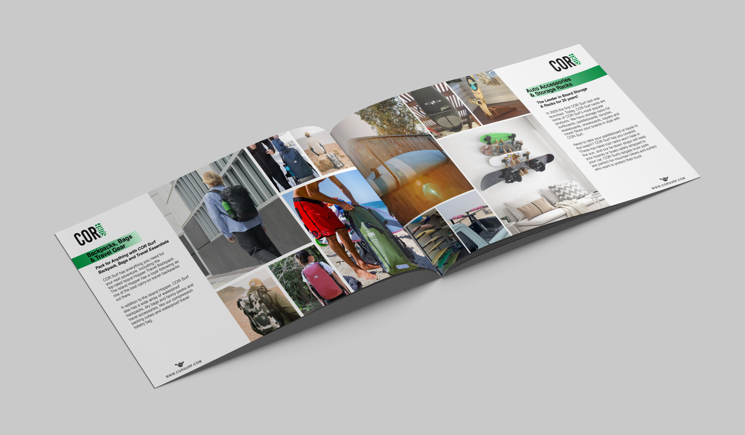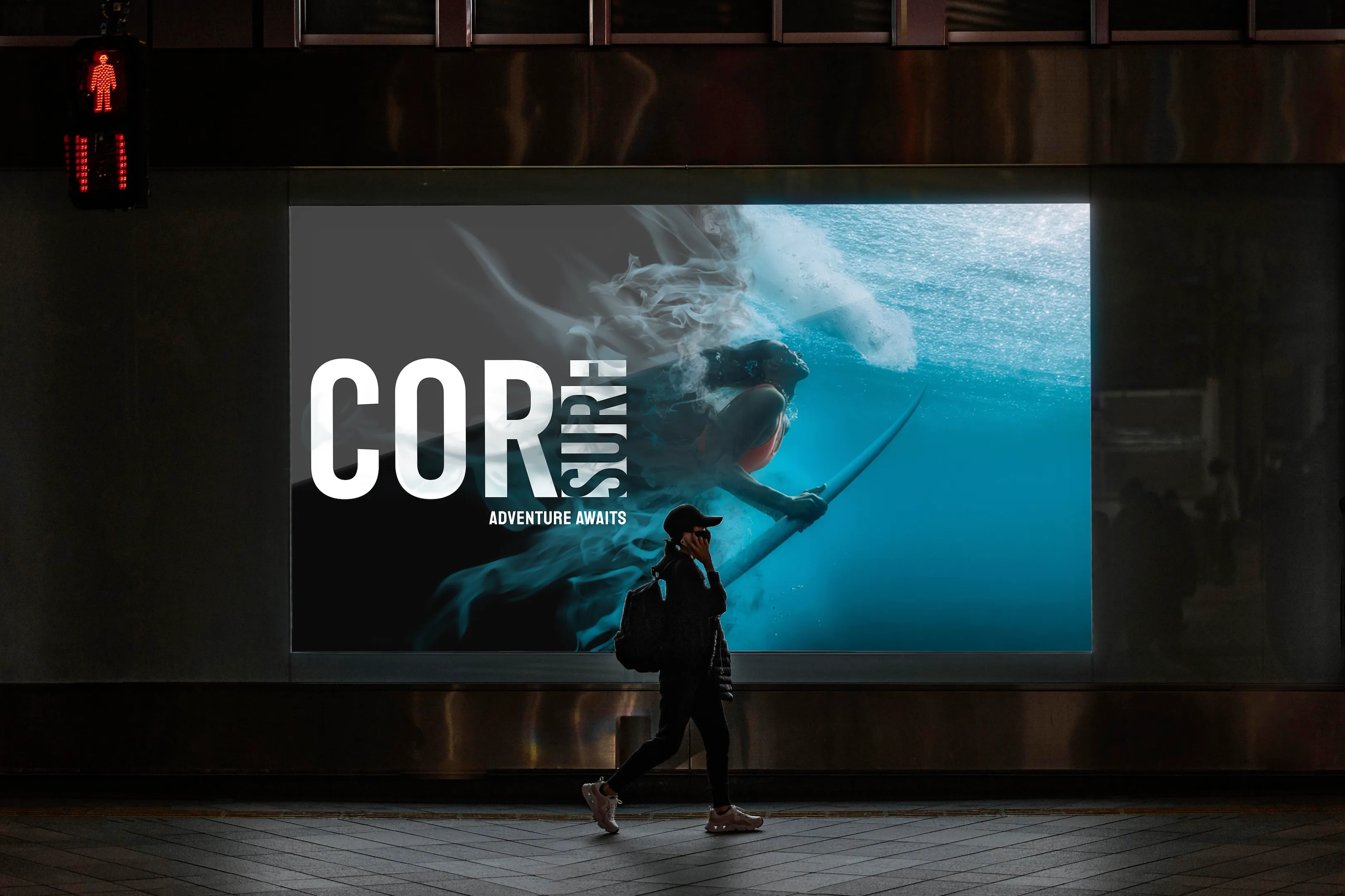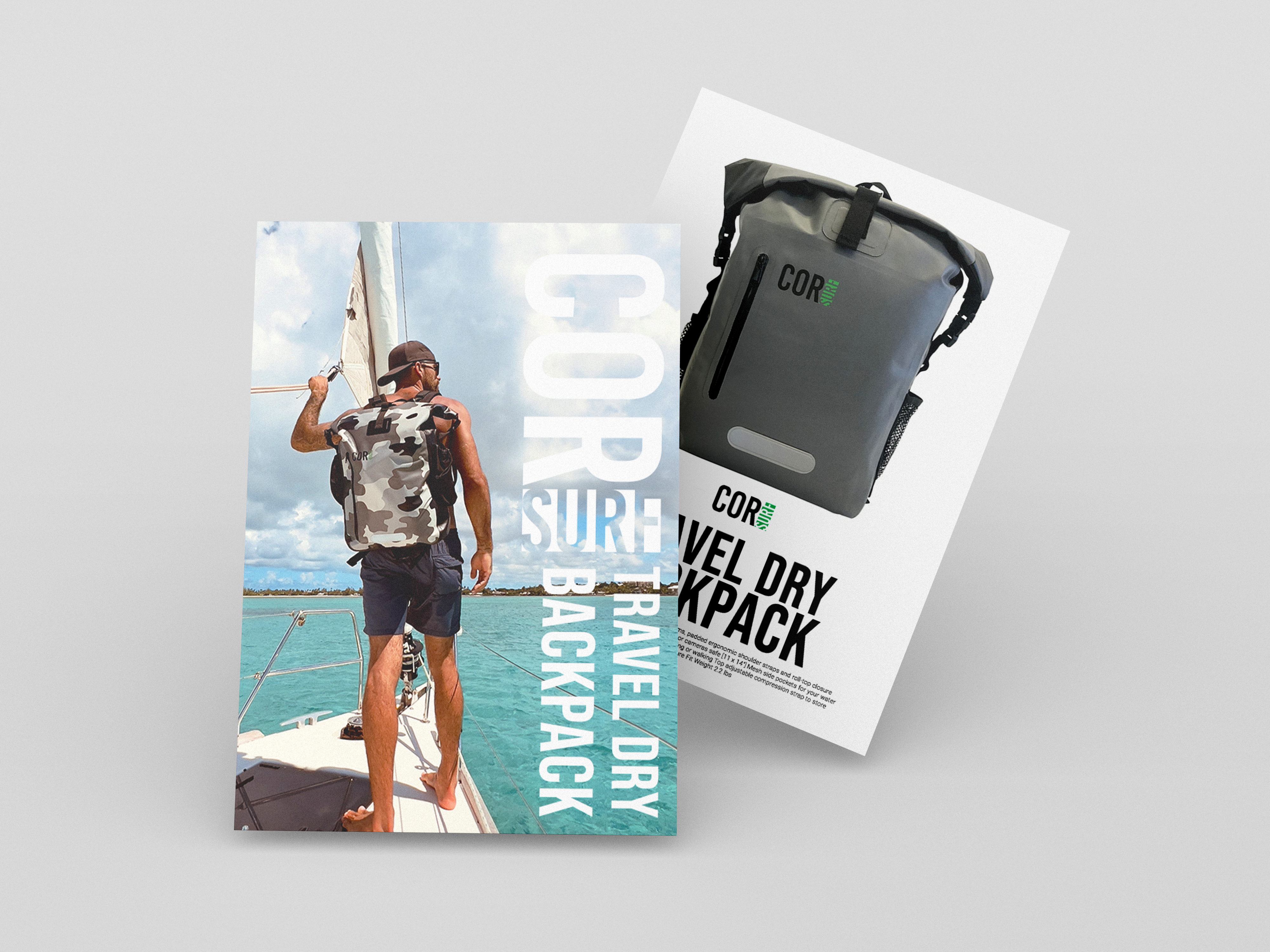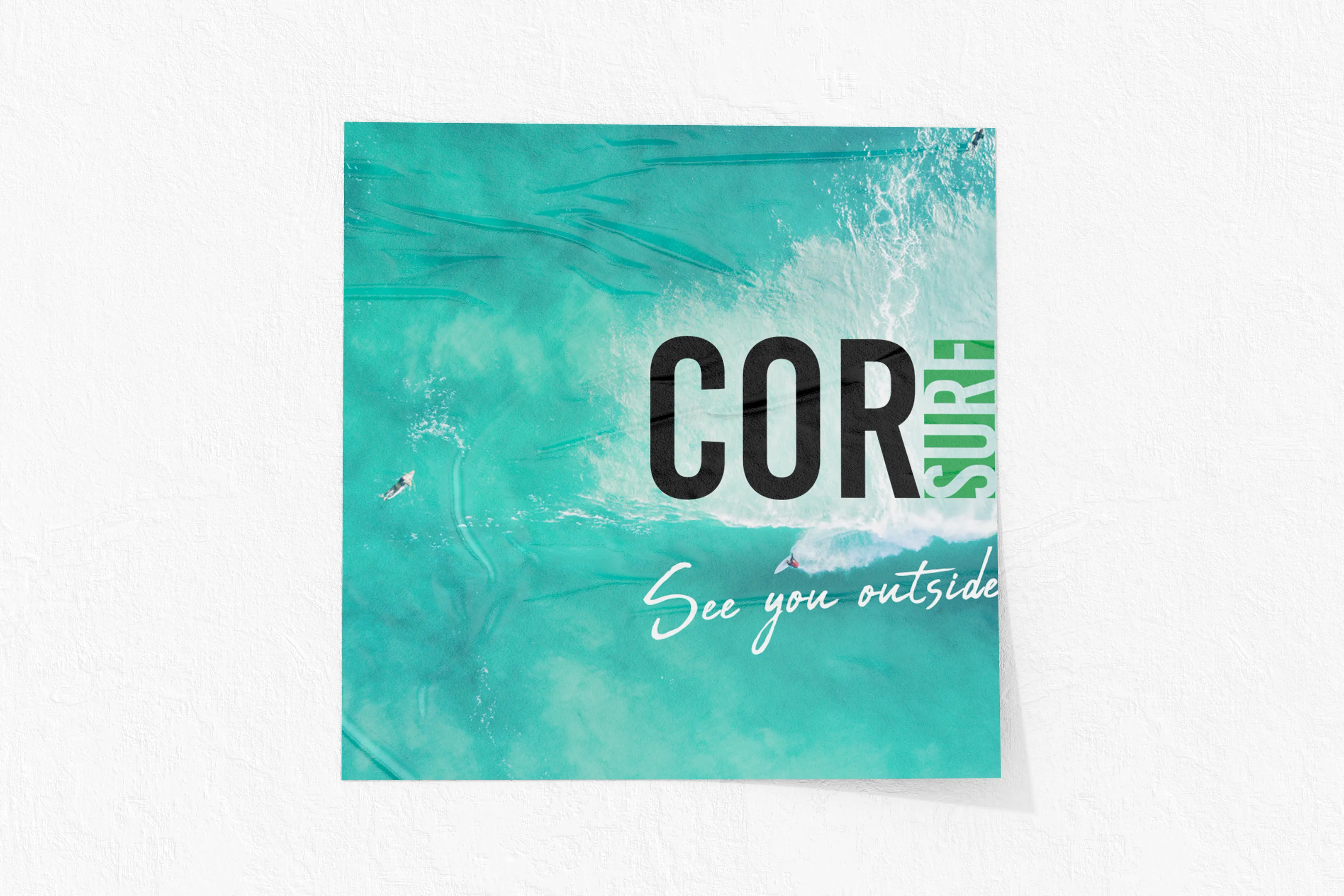 As the graphic designer for COR Surf, my work centers around translating the brand’s adventurous, outdoor lifestyle into bold, high-energy visuals that speak to surfers, travelers, and nature-lovers alike. The design style leans into contrast and clarity—combining rugged imagery with modern, utilitarian layouts to emphasize durability and function.