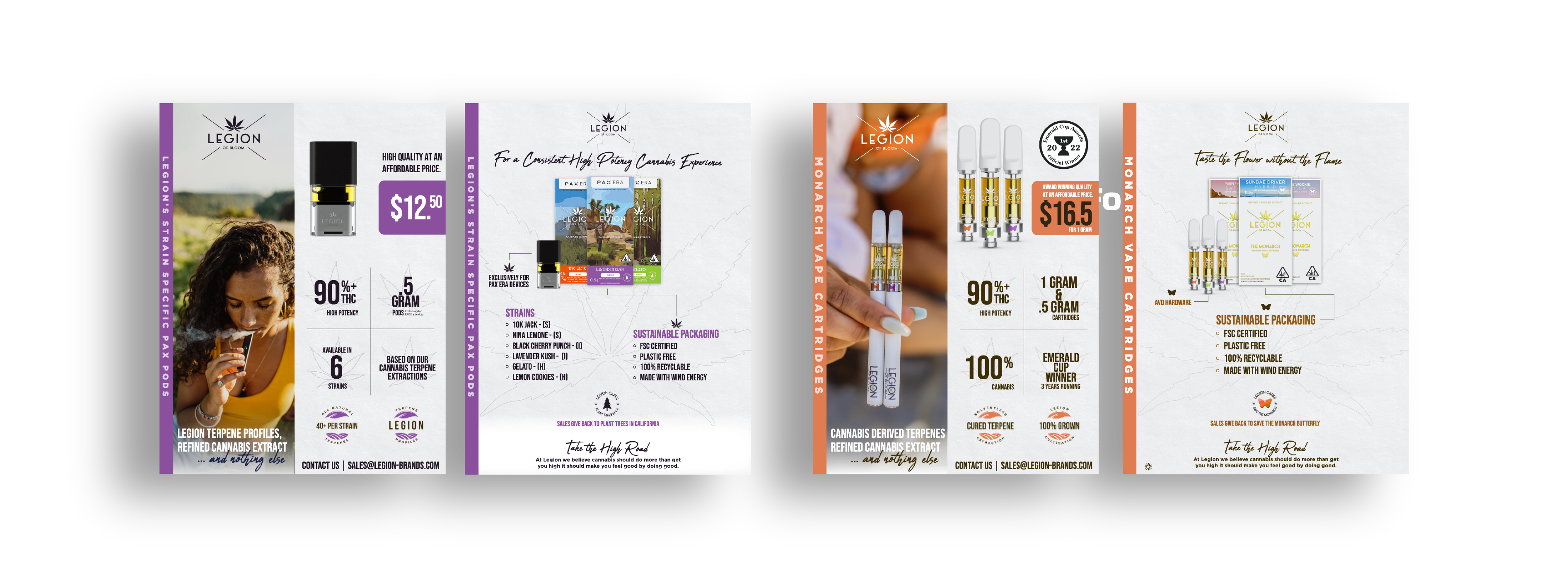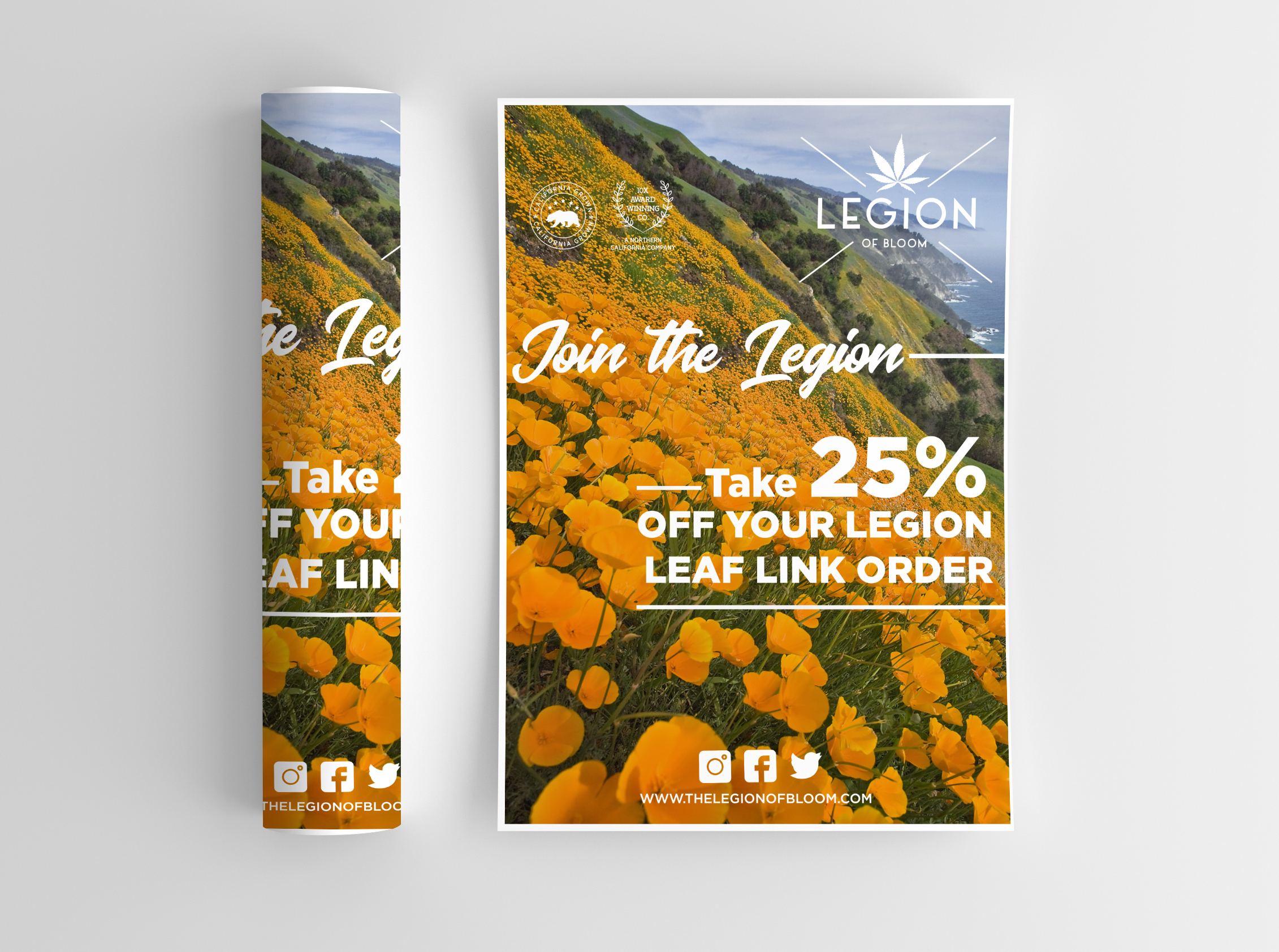 As the graphic designer for The Legion of Bloom, I helped shape a clean, eco-conscious visual identity that reflected the brand’s deep roots in sustainability and California cannabis culture.